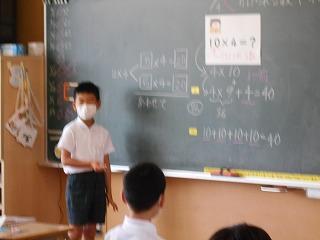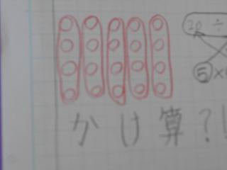 ↑3年 算数 かけ算?どのように分けるのか考えました。ノートに図を描いたり、図を描いて式とつなげたり、自分なりの考えをもつことが大切な学習ですね。