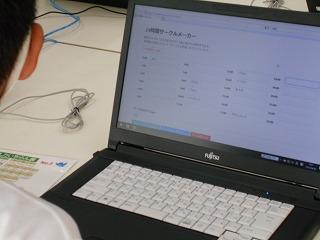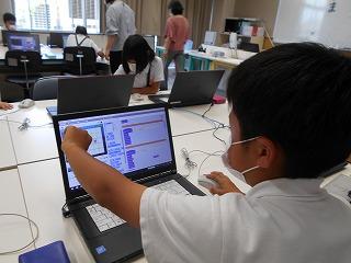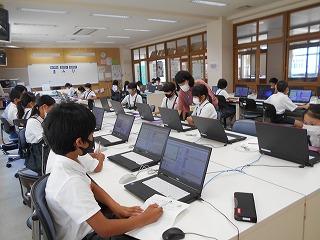 ↓4の2 総合的な学習 プラグラミング的思考を体験する学習です。前に進む、右を向く、左を向くことを命令し、こまを進めていきます。普段の学習と少し違う空間的思考をうまく活用して進めていく学習です。担任と共にICTサポートの先生が授業をサポートしてくださるので、子供たちは安心して学ぶことができます。