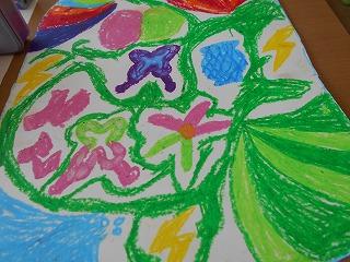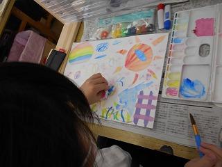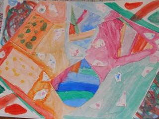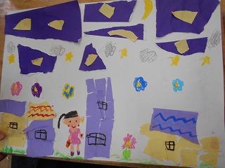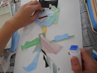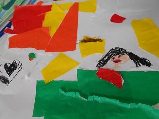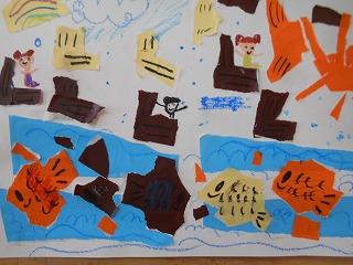 ↑1の1 図工 紙をちぎったら何が生まれるかな?思う存分に想像力を働かせ、感性が磨かれていきます。楽しそうに活動していました。