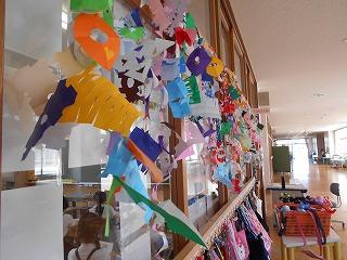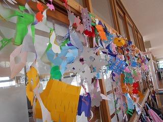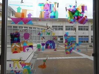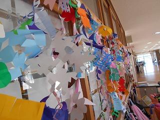 ↑2年生の廊下の窓に、涼しげな飾りがありました。