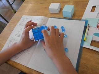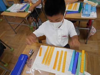 ↓1年2組 算数 いよいよたし算の学習です。ブロックを動かしながら、合わせるたし算の意味を考えました。