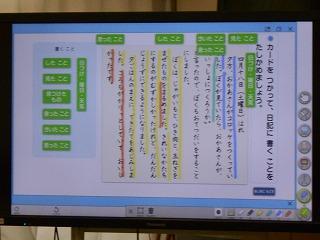 ↑あおぞら学級でも、映像を使って、わかりやすく、興味を持たせながら、くちばしの形を読んでいきました。