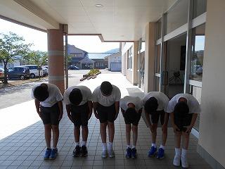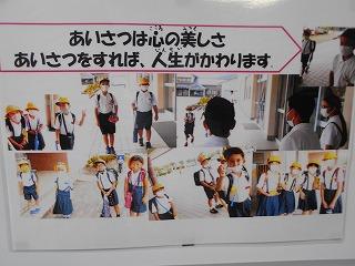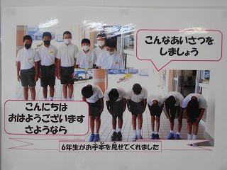 ↑ 玄関でも校舎内でもあいさつを広めようと取り組んでいる6年生です。6年生は下級生のお手本として、先あいさつにとりくんでいます。6年生が頑張っているので、全校の皆さんも頑張って先あいさつをしていますよ。これからもよろしくお願いします。
