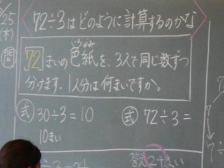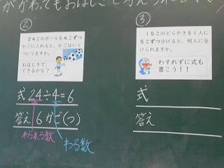↑4年3組 算数 分け方の問題です。図を描いて式とつなげて考えました。