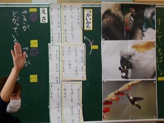 ↓1年1組 国語 くちばしの説明を理解するために、先生が作ったモデルの文が正しいか考えました。聞き方も身に着いてきました。