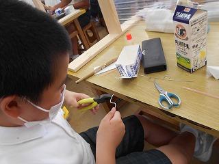 ↑4年2組理科 電流の働きの学習です。プロペラを回すために、キッドを組み立て、まず、回路を作りました。モータを組み入れました。うまく回ったかな?