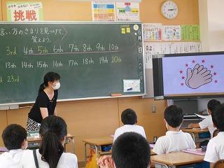 ↑5年2組 ALTのジョナサン先生と英語専科の先生とのTT授業です。What is your birthday ? 誕生日を英語で伝え合う学習です。日本語で何日を覚えた幼いころを思い出し、何度も何度も英語で数えてみてください。自然に数字に強くなりますよ。まずは、お風呂で、1st,2nd,~31th まで、繰り返し数えてみましょう。