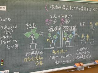 ↑5年1組理科 理科は級外の先生と学習しています。植物が大きく成長するためには何が必要か、これまでの学習のまとめを練習問題をして確認しました。植物の生長に必要な条件を練習問題でもう一度確認し、確かな力としています。