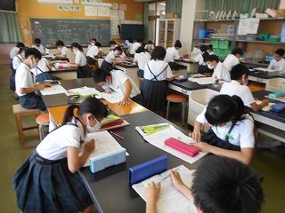↑ 2年生 テスト直しをしました。間違えは宝物です。どうして間違えたのか、理解して丁寧に直すことが、大きな力となっていきます。先生の説明を聞いて、考えなおしました。