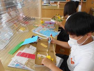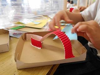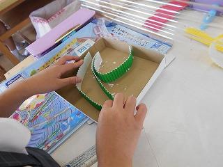↑ 4年図工 「コロコロガーレ」どのように組み立てた、ビー玉を楽しく転がすことができるか、考えながら、まず、土台を作りました。