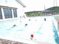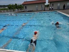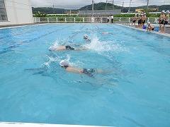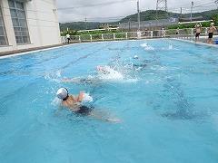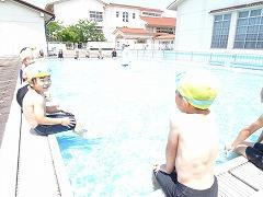 ↑4の2 プール学習です。6時間目は雨も上がってきましたので、プール学習ができました。プールの横は15mあります。まずは、15m泳げることを目標に練習をがんばっています。