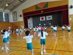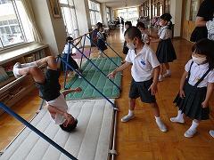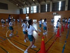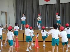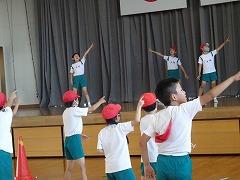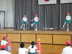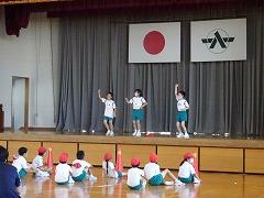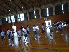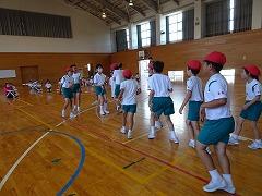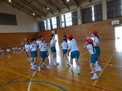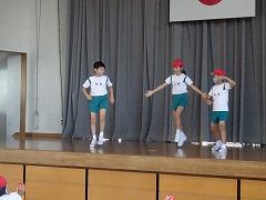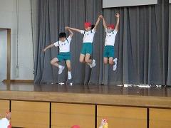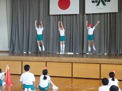 ↓大繩の次は、4の3の皆さんがグループごとに創作したダンスを披露し、3年生と一緒に踊りました。楽しくて、笑顔いっぱいになるダンスです。3人で工夫して、音楽に合わせながら作り上げたところが素晴らしいです。3年生も一緒に楽しんでくれたので、楽しいダンスタイムとなりました。