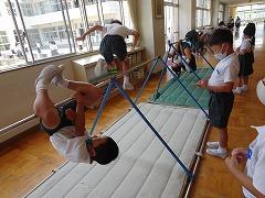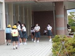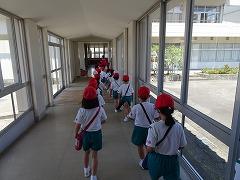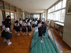↑今日は1の3の皆さんは体育館でたいいくでした。美しい列になって、黙って移動しています。