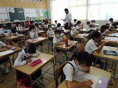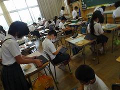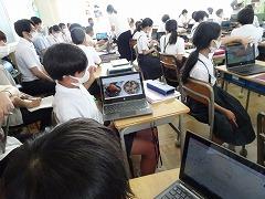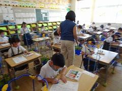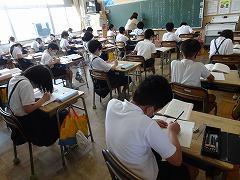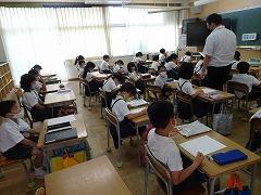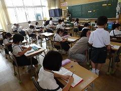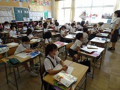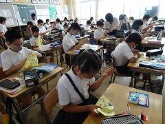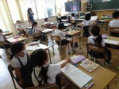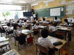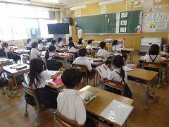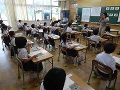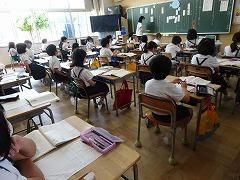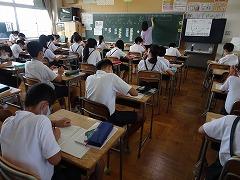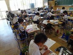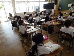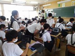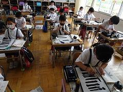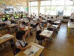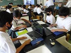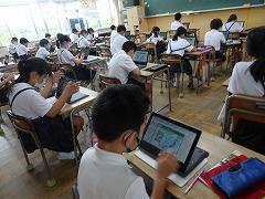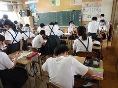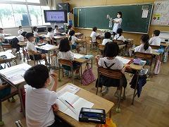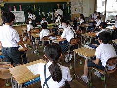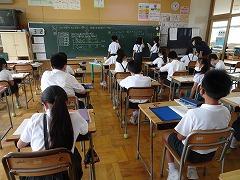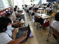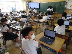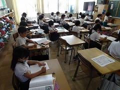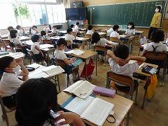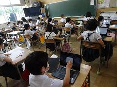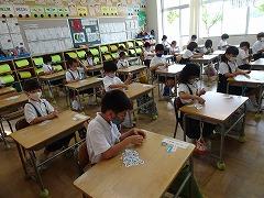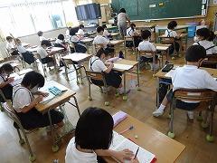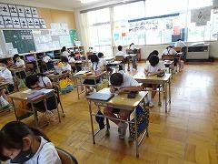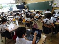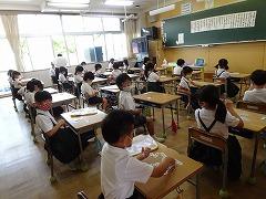 ↑朝学習、どのクラスも真剣に集中して取り組んでいます。今日は、クロームブックと漢字テストです。1学期に習った漢字を繰り返し覚えるまで練習します。