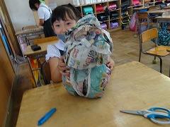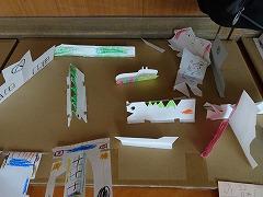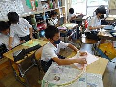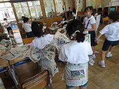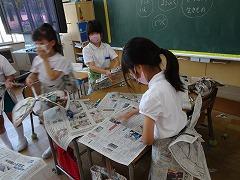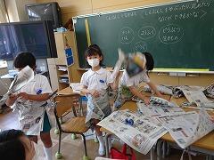 ↑2年生 新聞を使って工作です。どんなものに変身させようかな?