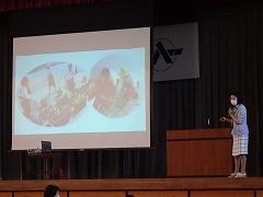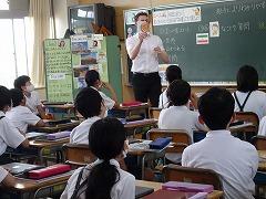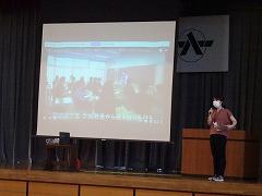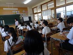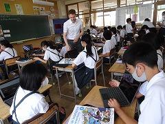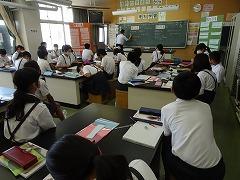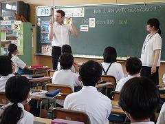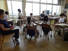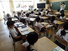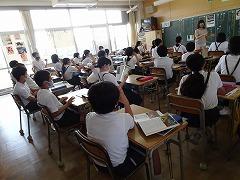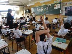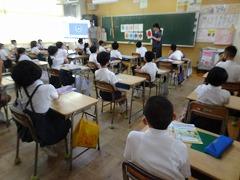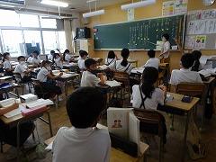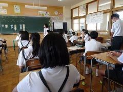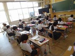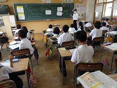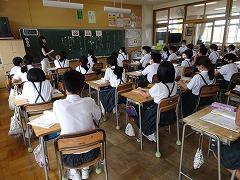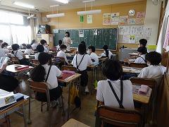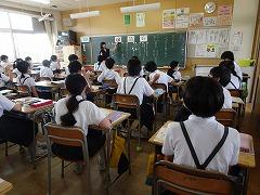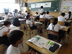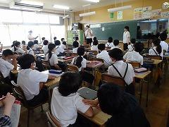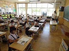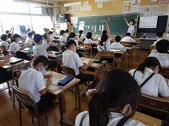 ↑6の2 英語 今日は津幡町の研修会として6の2で公開授業を行い、津幡町の小学校・中学校の先生方に見ていただきました。「校長先生にお勧めの国のよさを伝えよう」という学習です。自分のおすすめの国についてプレゼンテーションをつくり、今日はそれを友達に伝え「やりとりをする」学習です。友だちのおすすめの国のお話を英語で聞き、質問をしたり、感想を言ったりとこれまで習った英語を総動員させて会話をしていきます。その中で出てきた疑問や困ったことを解決しながらやり取りをする回数を重ね、上達していく主体的な学びとなる英語の授業でした。石川県教育委員会の英語担当指導主事の講義も引き続き行われ、津幡町の先生方と一緒に英語について研修を深めました。