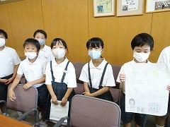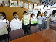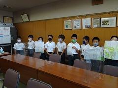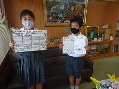 ↓総合的な学習 4の3 「中条公園にゴミが落ちている」ことに課題を持ち、何とか自分たちの力でゴミのない中条公園にできないかと動き出しています。まずは、みんなで話し合って、ポスターを貼ることに決めました。今日はその許可を得に、校長室にやってきました。