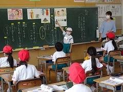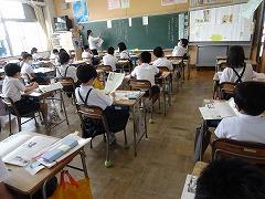 ↑4の1 道徳「ええことするのはええもんや」という教材文を用いて、思いやり親切の心について話し合いました。3人で力をあわせて車いすを押している時の気持ちをみんなで話し合いました。