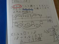 ↑5の1算数少人数 どんな計算になるか 倍を求めるのか、基の大きさを求めるのか、文章問題にチャレンジしました。