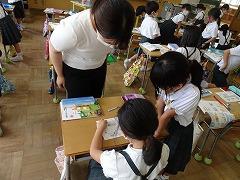 ↑3の1 国語科 登場人物の気持ちの変化について、場面の移り変わりと結びつけて、具体的に想像することができるようにと授業を行いました。〈りい子の気持ちの変化で一番おすすめしたいところがどこかな?〉教科書での学習の後、マイブックでも主人公の気持ちの変化で一番おすすめしたいところを自分で見つけました。
