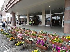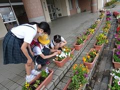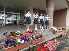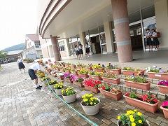 ↑環境委員会さんが水やりをしてくれるおかげで、きれいな花が元気に育っています。環境委員会さんのお世話のおかげで、お花を見る人は、心が楽しくなります。玄関では、自分から進んであいさつ運動をしてくれる人がいました。さわやかなあいさつをプレゼントしてくれて、ありがとう。