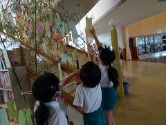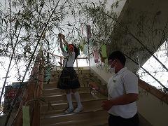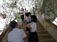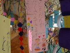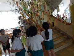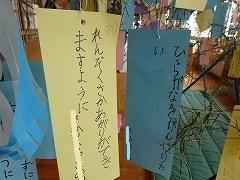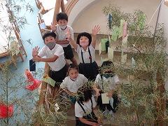 ↑進んであいさつ運動もしてくれました。願い事を書いて笹に飾り付けをしています。笹はPTAの方にお願いして、いただいたものです。日本に伝わる季節の行事を楽しんでいます。