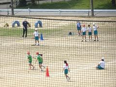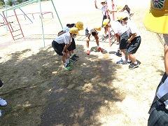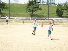 ↑5年生は、運動場でベースボール型のゲームをしました。