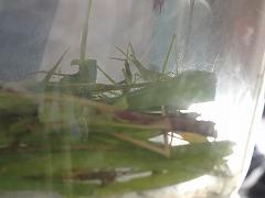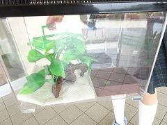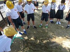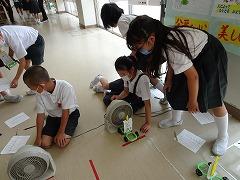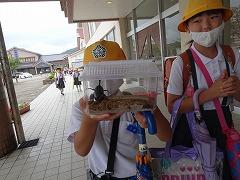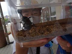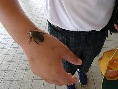 ↑2年生は生活科で生き物の学習をしています。生き物を見せてくれました。また、学校に来る途中で見つけてきたそうです。全体的に角ばった体つきなので、これは、カナブンのような気がします。