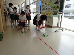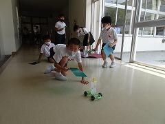 ↓3の2 理科 すてきなマイカーが出来上がりました。どのような仕組みで走るのかな?