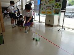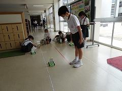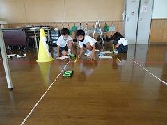 ↑最後に、ぴったり11mのところで車を止めるには、どうすればよいか、グループで話し合いました。今日話し合ったことは、次の時間の実験につなげていきます。