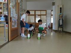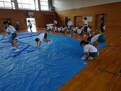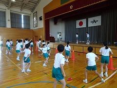 ↓4の3体育 リズミカルに八の字を跳ぶことができるようになり、3の3の子供たちに披露しました。スピード感あふれる3分間の大繩でした。