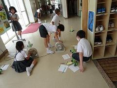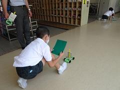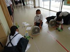 ↑3の1理科 風で車を走らせました。風の強弱によってどのように動き方が変わるのか実験しました。
