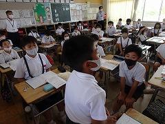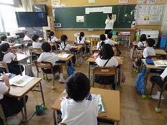 ↑生活目標の「今までしていなかった人にも挨拶をしよう」、学習目標の「いろいろな反応をしよう」についてお話しました。安全教育については「不審者侵入時の訓練の様子」を動画で見て、来週の不審者対応訓練の重要性をみんなで共有しました。7月の山を越えれば、楽しい夏休みです。よく話し、よく反応し、うんと考え、クラスみんなで大きな力にしていきましょう。