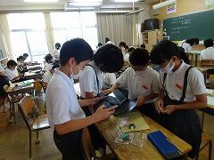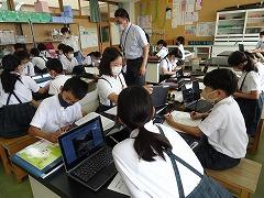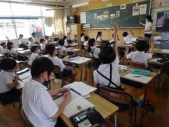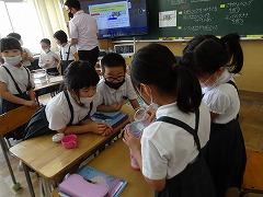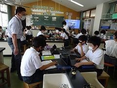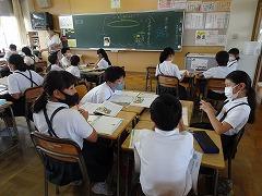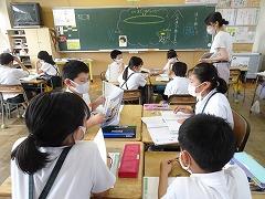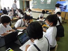 ↑5の3理科 研究授業です。「流れる水のはたらき」の学習です。流れる場所によって川の様子にはどんな違いがあるか調べていきました。各自がクロームブックを用いて、山の中、山から平地に出たところ、平地の3つの地点で調べました。その後グループで交流し、全体で確認していきました。川幅、川岸、石、流れについて特徴をつかんでいきました。