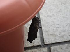 ↑アゲハの幼虫です。夏には成虫となって、ひらひらと飛び立ってくださいね。さなぎも見つけました。このさなぎから何に変身するのでしょうか?