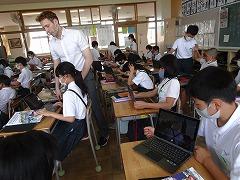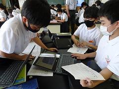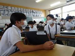 ↑6の2英語の授業です。Let's go to Italy ! 自分が選んだおすすめの国のよさを伝えるための準備をしています。クロームブックが大いに役立っています。