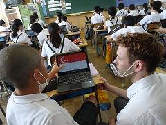 6年英語 行ってみたい国を英語で紹介してくれました。クロームブックで作った各国のプレゼンテーションの画像がきれいで、まるで外国旅行に行っているかのようでした。