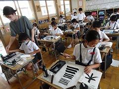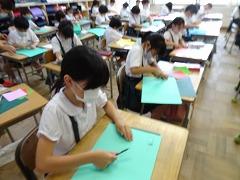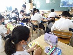 ↑5年生 家庭科 波縫いの練習です。集中して頑張っています。