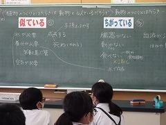 ↑6の1の理科の授業です。植物の体のつくりと動物の体のつくりを比較し、似ているのか考えました。比較すると、相違点、類似点が明らかとなり、特徴を明確につかむことができました。