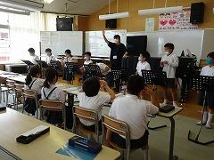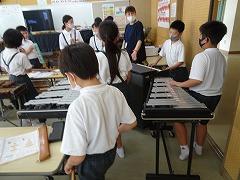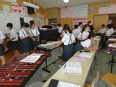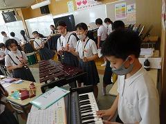 ↑5の1音楽 「リボンのおどり」の曲をどのように演奏したらよいかな、いろいろな音色が感じられるように、グループ演奏の練習をしました。