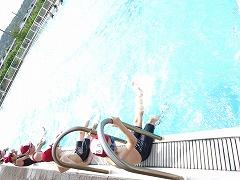 ↓3年生 待ちに待ったプール学習です。初めに座って、バタ足練習をしました。いよいよプールに入ります。歩いたり、潜ったりしました!気持ちいい!プールの約束はしっかり守ることができています。