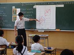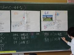 ↑5の2社会科 くらしを支える食糧生産の学習です。野菜・果物・畜産の産地はどのように広がっているのか調べ話し合いました。