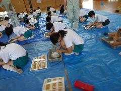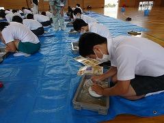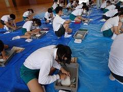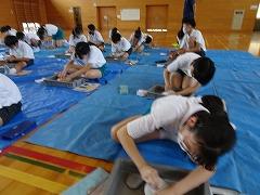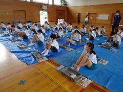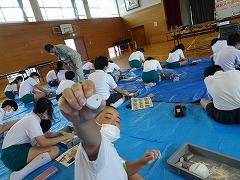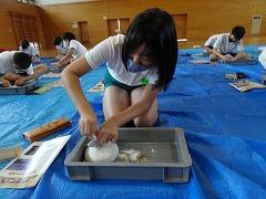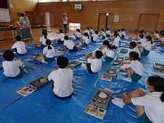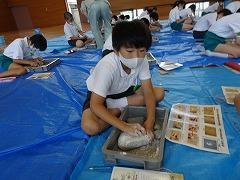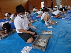 6年石川県埋蔵文化センターの講師の方お招きし、古代体験学習を実施しました。今から6000年前の貝塚から出土した土器や黒曜石、貝殻などを見せていただき、古代の人々の生活に思いを馳せました。1万年前の時代から人々はアクセサリーを身に付けていたそうです。今日は、魔除けとされていた勾玉づくりにもチャレンジしました。↓6年2組