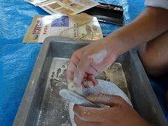 ↑黒曜石では紙もすっきりと切ることができます。6000年も前の遺跡から出土した黒曜石だそうです。石なのにすごいです。↑感想をお伝えし、後片付けまでしっかりしてくれました。