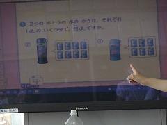 ↑2の1算数科 水のかさの学習です。ミリリットル、デシリットル、リットルの単位を学んでいきます。今日は、同じかさのコップで比べなければならないことを学びました。