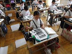↑4の1の音楽の授業です。いろいろなリズムを感じ取る学習です。リズム、拍、よびかけと応えなどが生み出すおもしろさを感じ取りながら、曲の特徴を捉えた表現を工夫し、演奏しました。