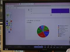 ↑2の1学活お楽しみ会の計画 何をしたいかアンケートをクロームブックでとりました。学級のみんなが選び、その結果がすぐに円グラフに集計されています。