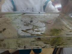 ↑2の3 中条公園へ行ってつかまえてきたメダカさんを見せてくれました。こんなにたくさんつかまえることができたのですね。