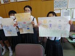 ↑6の2 道徳 国際親善の心について考えました。「東京オリンピック国旗に込められた思い」の教材文を読んで、国と国が理解して互いに尊重し合う心とはどのような心か話し合いました。