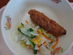 ↑今日の給食です。キャロットパンと、豆腐と鶏肉のフライ、ツナサラダ、キャベツとコーンのスープでした。